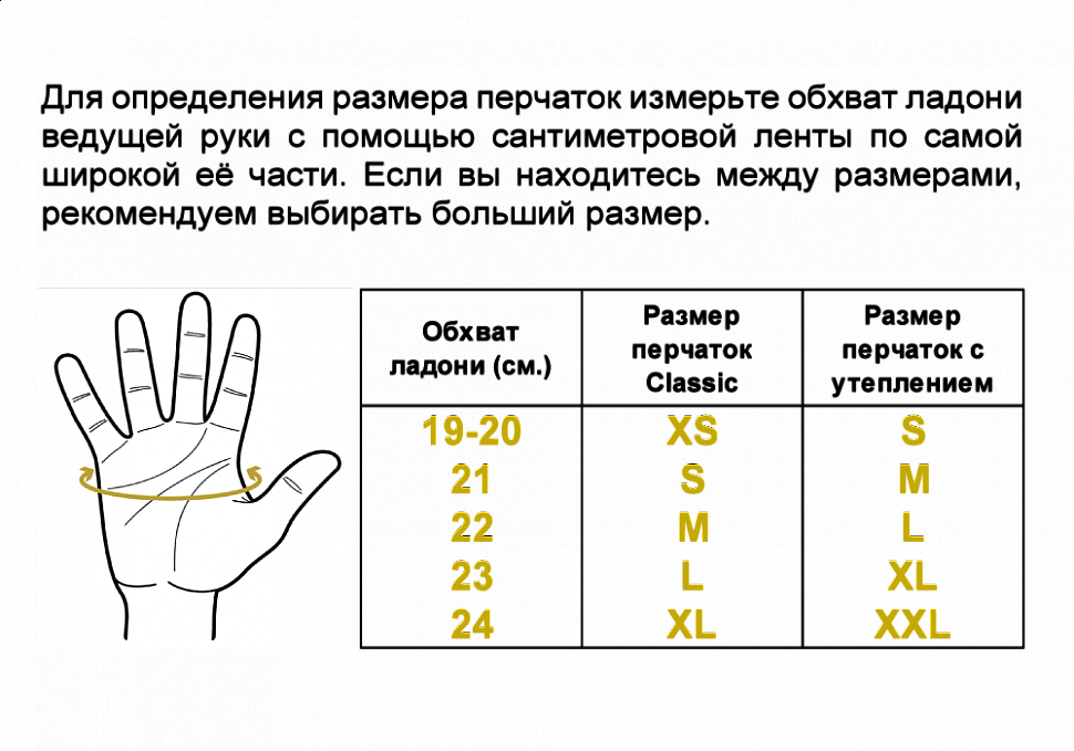 Эти правила касаются покупки через интернет. Если покупаете перчатки в магазине, обязательно примерьте перед покупкой, ведь у разных производителей размерная сетка может отличаться.