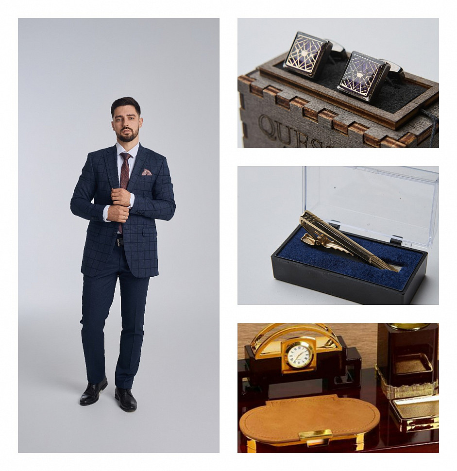 Оригинальным и желанным подарком для мужчины который ценит классику и стиль, следит за модой и выглядит элегантно, станет подарочный бокс, который включает самые распространенные предметы классического мужского гардероба: галстук, платок, зажим для галстука, запонки, носки.