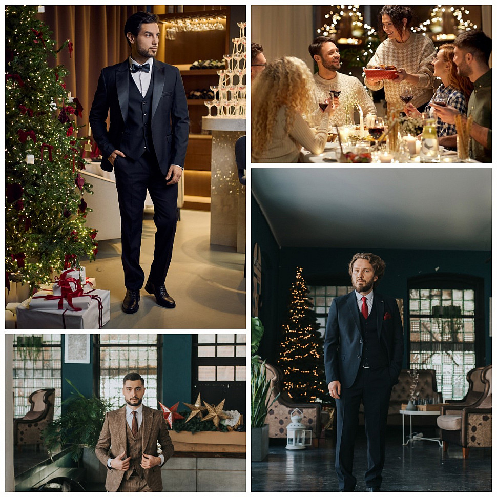 При выборе образа, придерживайтесь элегантного и сдержанного образа. Добавить образу шик, помогут изысканные аксессуары. Необычные запонки, нагрудный платок и галстук, помогут внести завершающие штрихи праздничному образу.